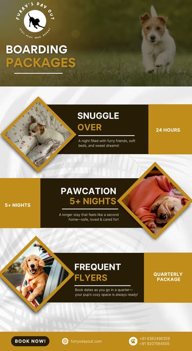 We’re more than a boarding—we’re a space where dogs thrive, bond, and feel loved. Join our growing Furry’s Day Out family and give your pet a stay that feels like home. Tap below to book.